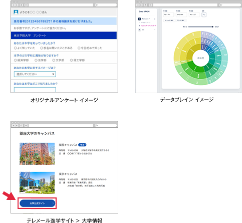 テレメールをご導入いただくと、弊社が運営する「テレメール進学サイト」内に貴学公式サイトへのリンクを設置し、弊社サイト訪問者を貴学公式サイトへ誘導します。