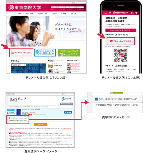 貴学公式サイトにご導入いただいたテレメールからの資料請求については、テレメール手数料80円(税別)が無料となります。